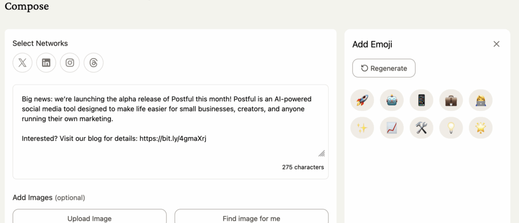 The Emoji Tool helps you quickly find emojis that match the content of your post.